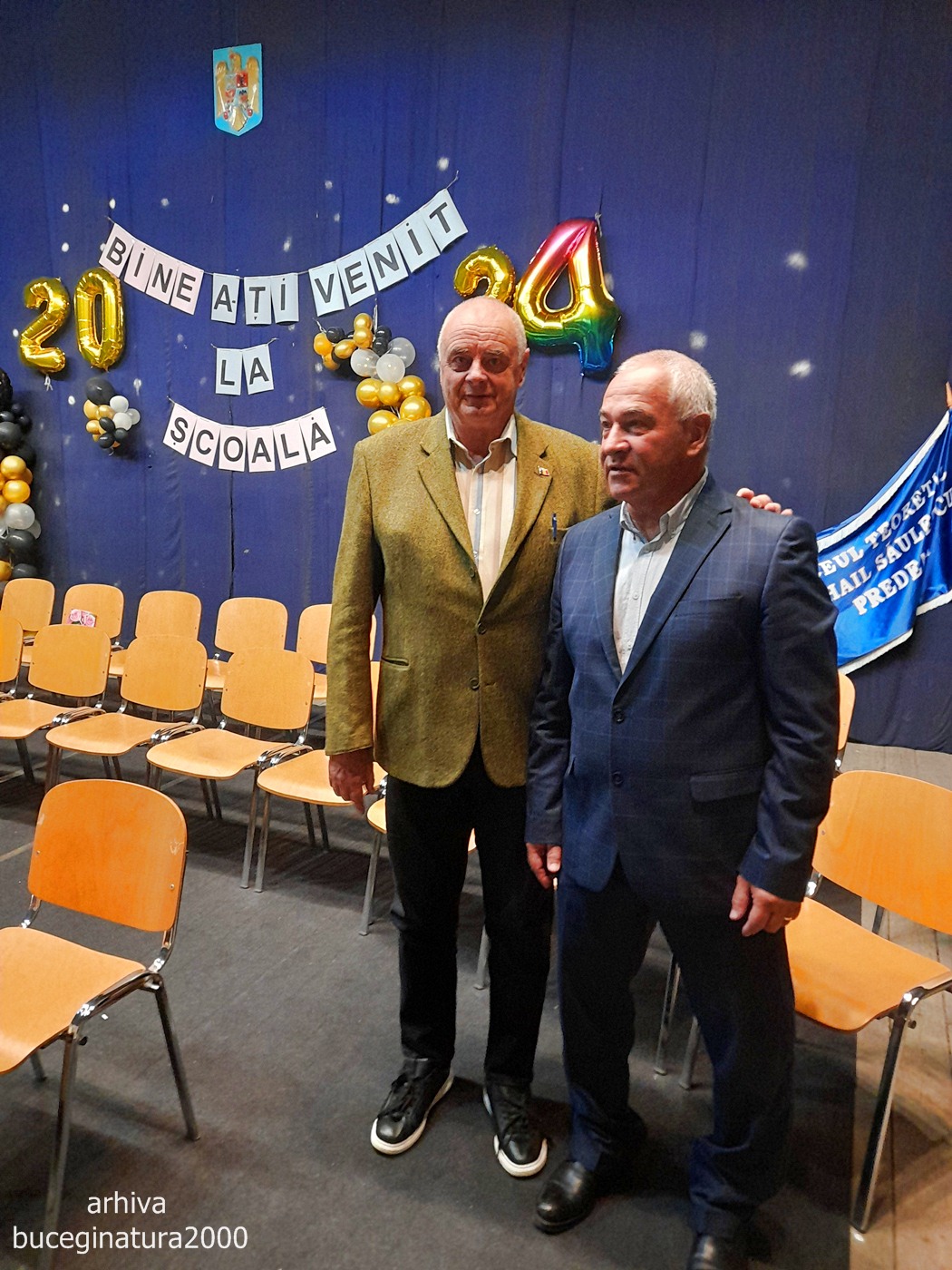 Profesorul Mihail Olaru in dreapta si profesorul Campan Ioan in stanga. Poza am realizat-o in septembrie 2024, la inceput de an scolar.