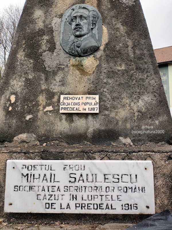 Monumentul poetului Mihail Saulescu. Candva a avut si o placa in acel loc.