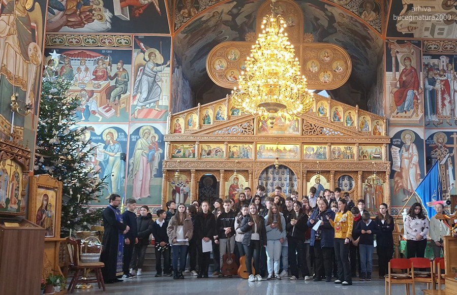 Iar joi, copiii au impodobit cu colinde Casa Domnului din centrul localitatii: