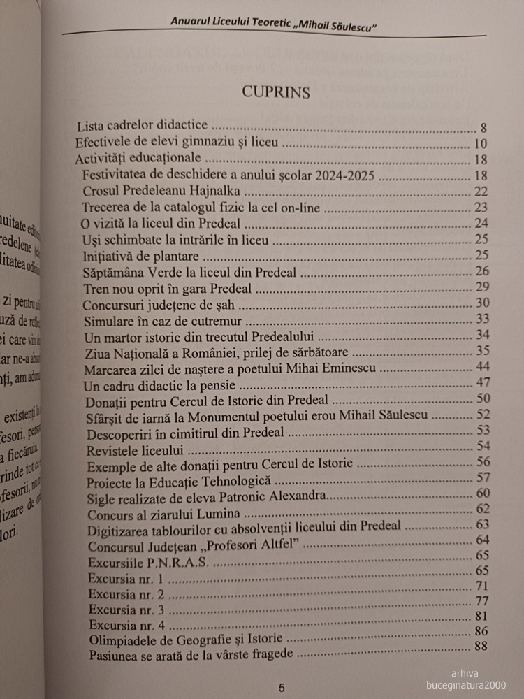Cuprinsul nu e deloc de neglijat, adica nu e despre „poezii si pauza mare” :))) Sunt si articole unicat pentru Predeal. Absolut ca as mai fi putut adauga 50 de pagini lejer, cu alte actiuni de prin scoala… dar nu am avut cunostinta de toate.
