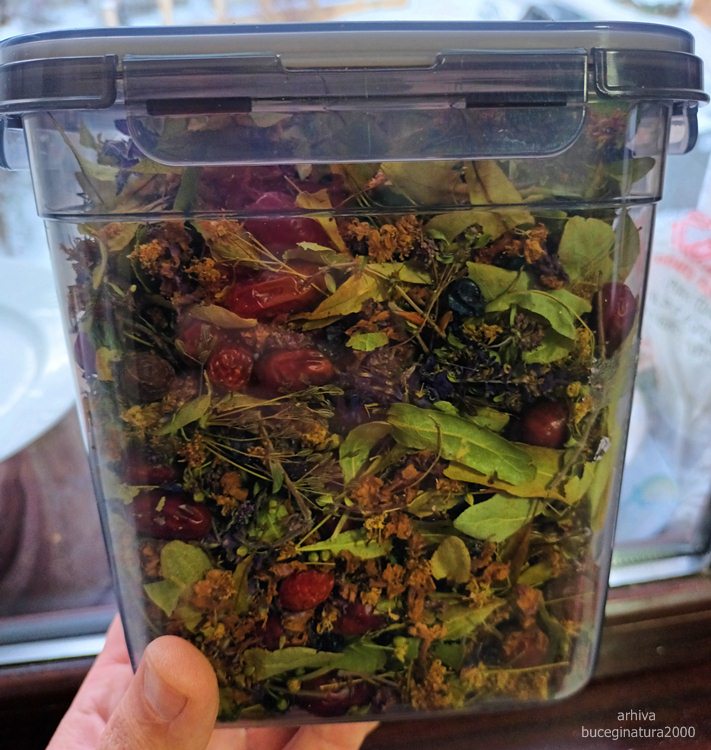 Inainte, acum mai multi ani, culegeam cam 12-15 plante de ceai si le amestecam in proportii corecte. Nici sa dea gust doar de menta, ca de exemplu. Tot de niste ani am largit baza si sunt pe la 20 de plante, un amestec sanatos, care poate fi baut fara indulcitori.