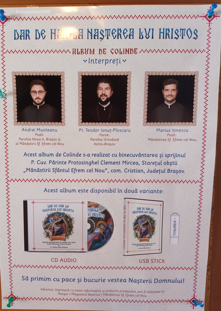 Afis despre un album de colinde realizat de cei din manastire si nu numai.